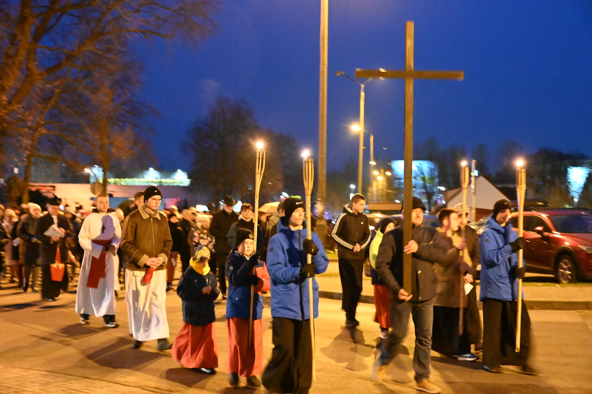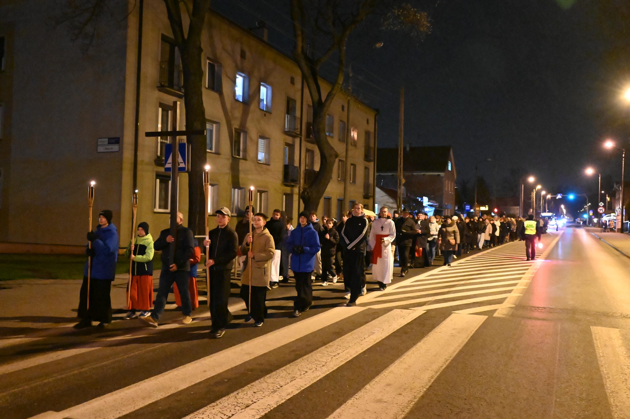 Droga Krzyżowa przeszła ulicami: Brodzińskiego, 1 Maja, Harcerską, Sokolską, ks. Lexa, 1 Maja. Zakończenie w kościele Błogosławieństwem i Apelem Jasnogórskim.